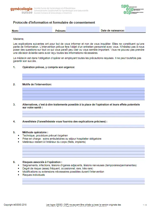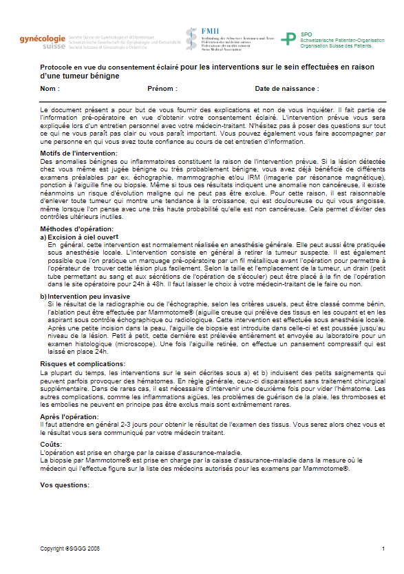 Informationsprotokoll zu Eingriffen bei gutartigen Tumoren