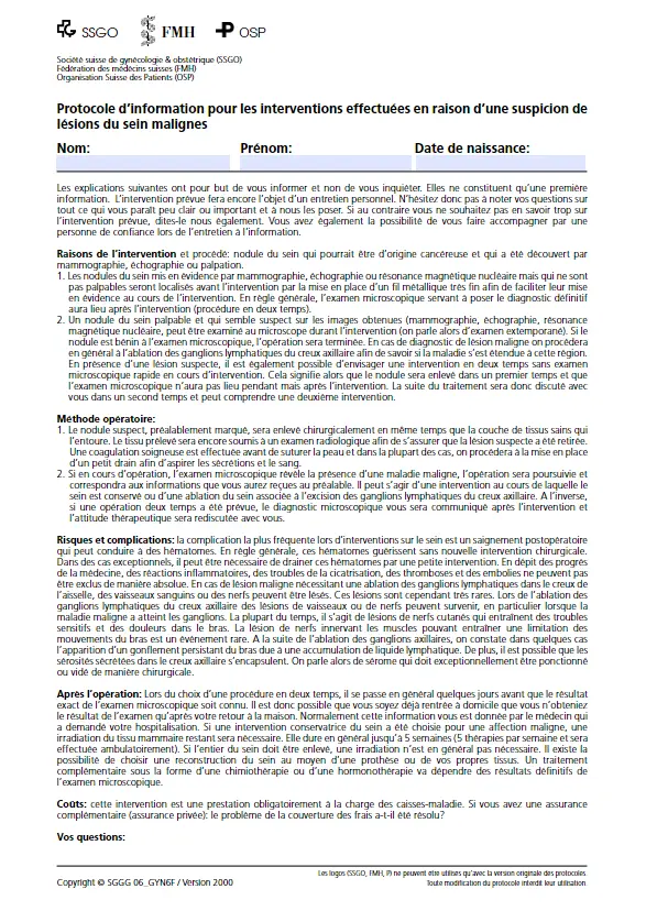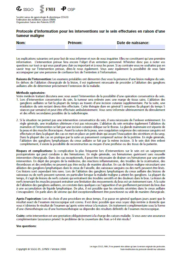Informationsprotokoll zu Eingriffen bei bösartigen Tumoren