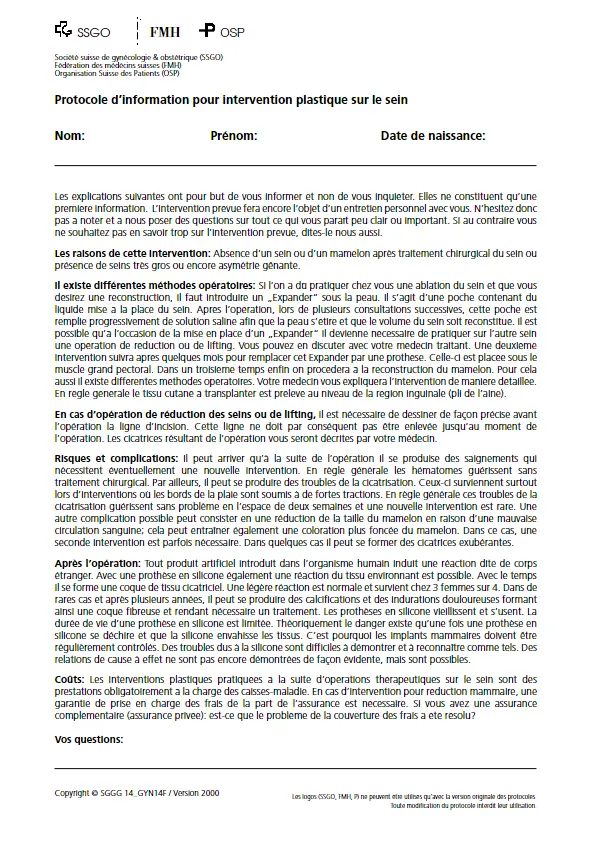 Informationsprotokoll für plastische Eingriffe an der Brust